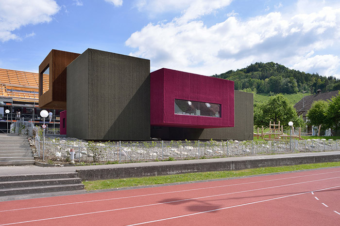 遙遠的瑞士在鄉村一所小學的附近坐落著一座風格獨特的幼兒園,遠遠看去就像是用幾個大箱子堆積起來的一樣,......