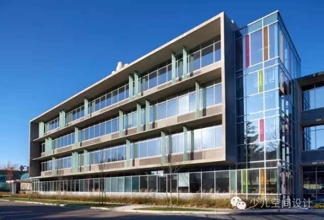這是一個擴建項目,新舊元素被整合,并裝點上一致,跳躍的彩色玻璃達到統一。與以往的安裝方式不同,有一部分彩色玻璃側安在墻上,就像樓房上的豎向廣告牌一樣。玻璃在與陽光的舞蹈中,給建筑帶來變化,有趣的色彩板塊。兒童與家庭研究中心位于兒童與婦女健康研究中心的46英畝校園內。各方面皆是加拿大西部規模最大研究院,研究院同時還涉足其它臨床研究領域,具有動物保健設施,商店設施,教育中心等其它功能。該項目是一個擴建,與原有建筑整合后,面積達到了11924平方米。