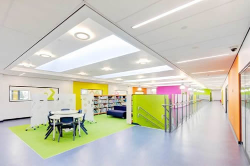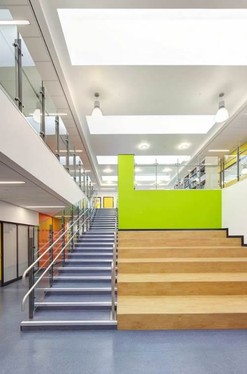 中央學(xué)習(xí)空間自然采光,通過一排排的北向窗戶進(jìn)行通風(fēng),這些窗戶與建筑管理系統(tǒng)融為一體,以確保創(chuàng)造一個(gè)舒適的學(xué)習(xí)環(huán)境,同時(shí)減少生命周期成本。廣場為學(xué)生和來訪者提供了清晰、明確的方向?qū)б捎诳臻g開放,布局暢通,因此有助于減少欺凌弱小的行為發(fā)生。