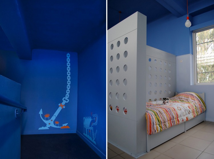 睡眠空間包含兩部分,一是隱藏空間,一是“凹處”。“隱匿處”的穿孔木制面板創造了獨立而且光學連續性良好的房間,而在“凹處”靠床一面的墻壁則被加厚,床深深嵌入環繞它的墻壁里,保證了在公共房間內的隱私。