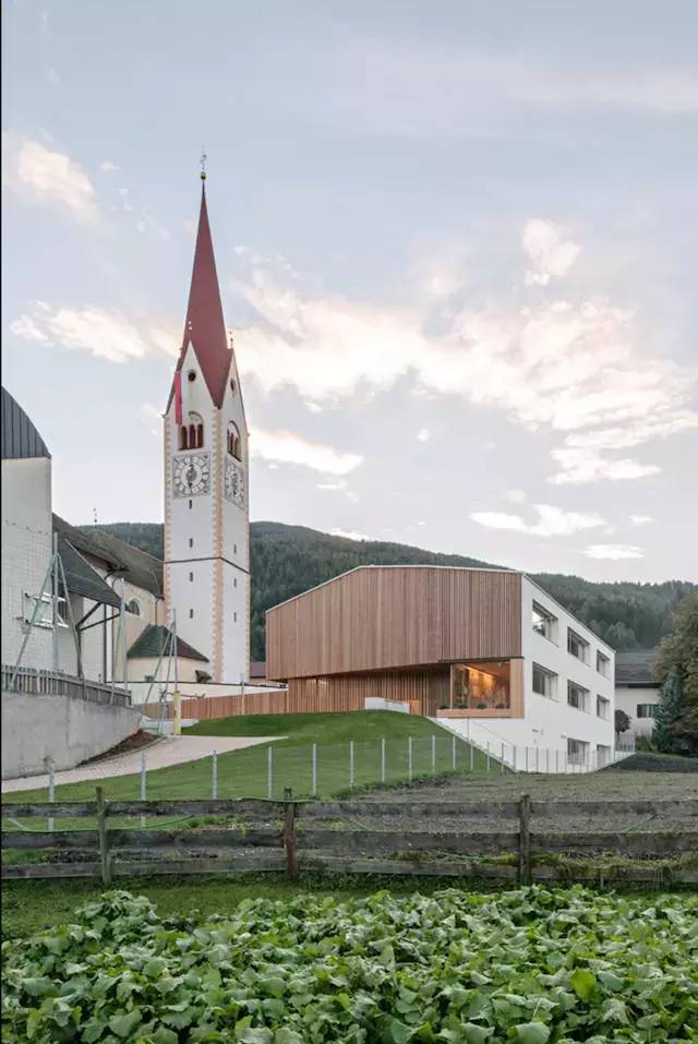 位于意大利北部博爾扎諾自治省一個(gè)四面環(huán)山的安靜小鎮(zhèn)。這里有著深紅色尖頂?shù)慕烫茫切℃?zhèn)中最醒目的建筑。其他的建筑基本上都是粉飾一新的白墻搭配深色的屋瓦,隨意的坐落在鄉(xiāng)間小道邊。小鎮(zhèn)上有好幾棟年代稍久的房子,墻面用木板裝飾充滿韻味十分古樸。