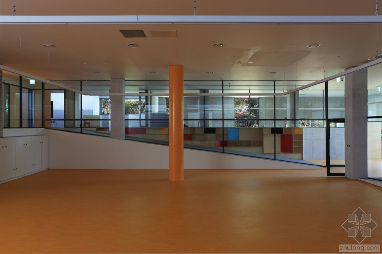 幼兒園有一個規(guī)格為23米*48.5米的矩形混凝土地下室,根據(jù)各個室內(nèi)兒童的實際需求,房間的高度也是設計的歌不相同,在地下室里會有一些學習活動,與其他教學區(qū)域密切相關。18個教室以及其他的功能性區(qū)域?qū)⒈环稚⒃?個建筑里,它們的尺寸各不相同,朝著一定的方向高度逐漸升高,這主要是與周邊的逐漸升高的地勢相互照應。如今,這些教學設施已經(jīng)成為了該地區(qū)的標志性景觀,18個教室和一個門廳的設計吸引了眾多家長前來參觀。