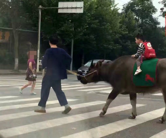 近日成都一位父親登上了熱搜,其原因是一個(gè)小娃娃背著書(shū)包坐在一頭黑色大牛背上,前面一名中年男子牽著牛走著。讓路人很是好奇。