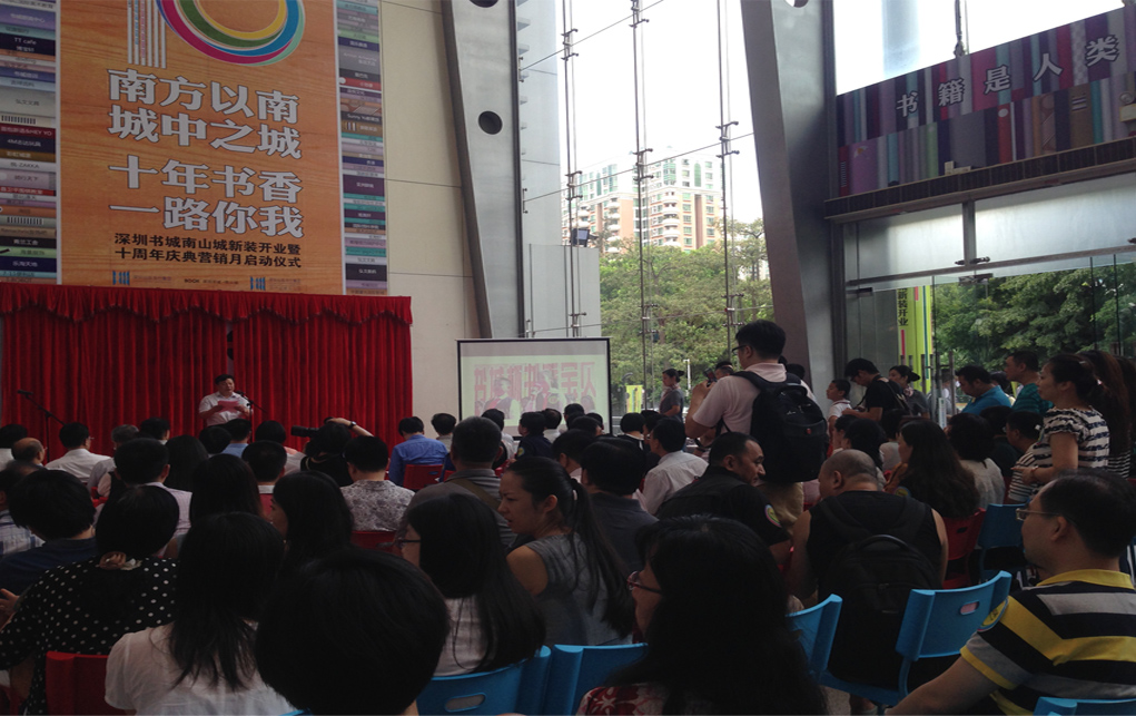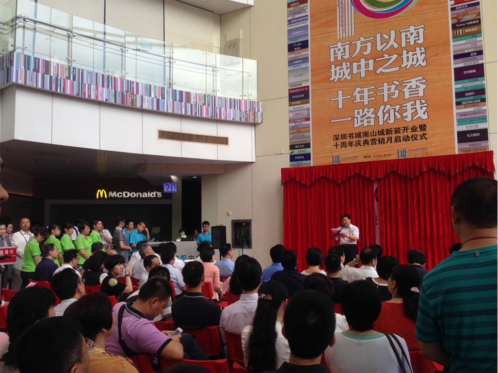 2014年7月12日上午11:00,深圳書城培訓南山書城旗艦店正式升級啟航,在南山書城5樓舉行了隆重的揭牌儀式。書城培訓南山書城旗艦店是書城培訓轉型以后打造的第一家針對于青少年為主的形象店。公司設計總監賀維,創意總監朱行奇應邀參加開業典禮,設計總監賀維并被邀請參加了揭牌儀式。項目設計效果得到了領導的高度認可和家長學生們的贊賞。